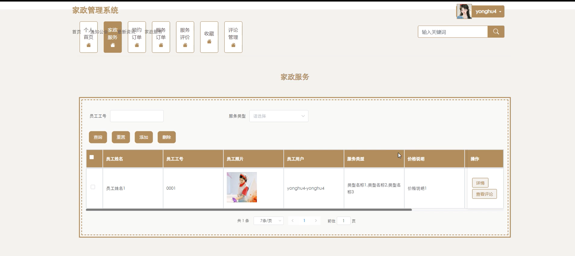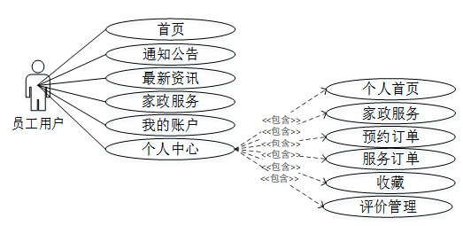 - 员工用户:可以发布家政服务信息,管理家政服务价格,处理预约服务单,也有评价和投诉交易等功能。