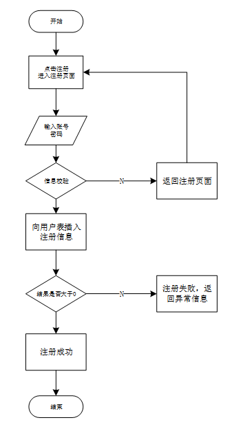 注册的过程,第一部分是账号的注册,第二部分是信息完善。在业务开展过程中,管理员可对用户信息进行修改等管理操作,注册流程如图3-4用户注册流程图所示。