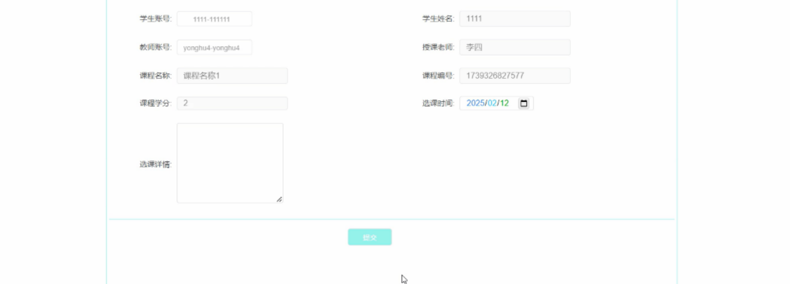 | 添加课程信息功能测试 | 1. 打开添加课程信息页面。 | 页面正常加载,显示信息填写表单。 | 与预期结果一致。 |