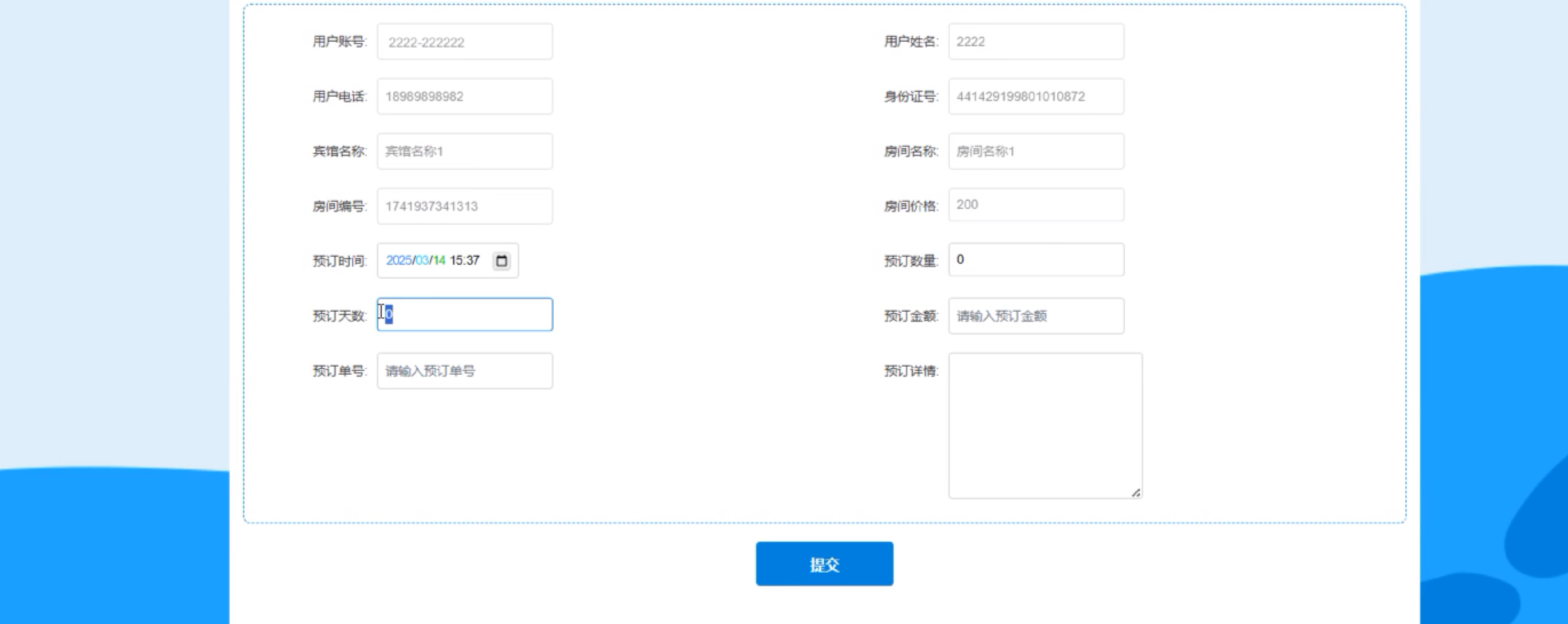 在技术层面,系统采用Spring Boot作为核心框架,因其简化了基于Spring的应用开发过程,允许开发者快速构建独立运行的生产级Spring应用。此外,系统结合使用了MyBatis进行数据持久化,使得数据库操作更加便捷高效。同时,前端页面的设计注重用户体验,采用了响应式布局确保在不同设备上均能获得良好的浏览效果。整体而言,该宾馆住宿管理系统通过集成现代Web开发技术和细致的业务逻辑设计,为用户提供了一个功能齐全、操作简便且稳定可靠的在线服务平台。这不仅提升了宾馆服务的数字化水平,也为宾客提供了更为便捷、高效的住宿预订与管理体验。