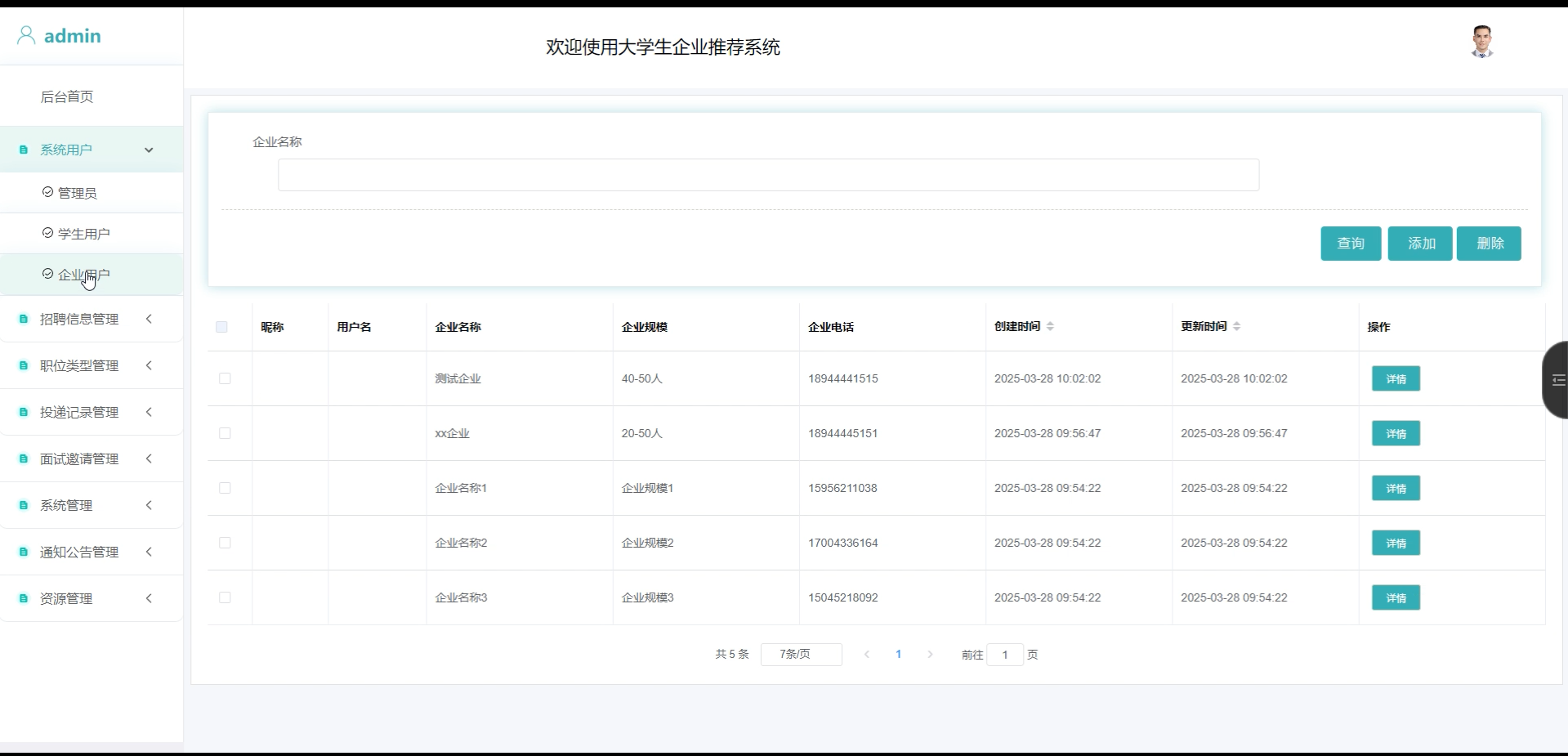 系统用户:管理注册在平台上的所有用户(学生、企业),执行用户的添加、删除、权限设置等操作。