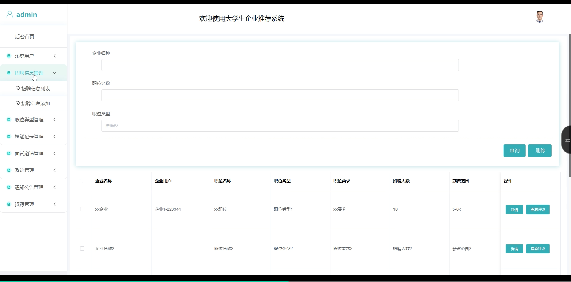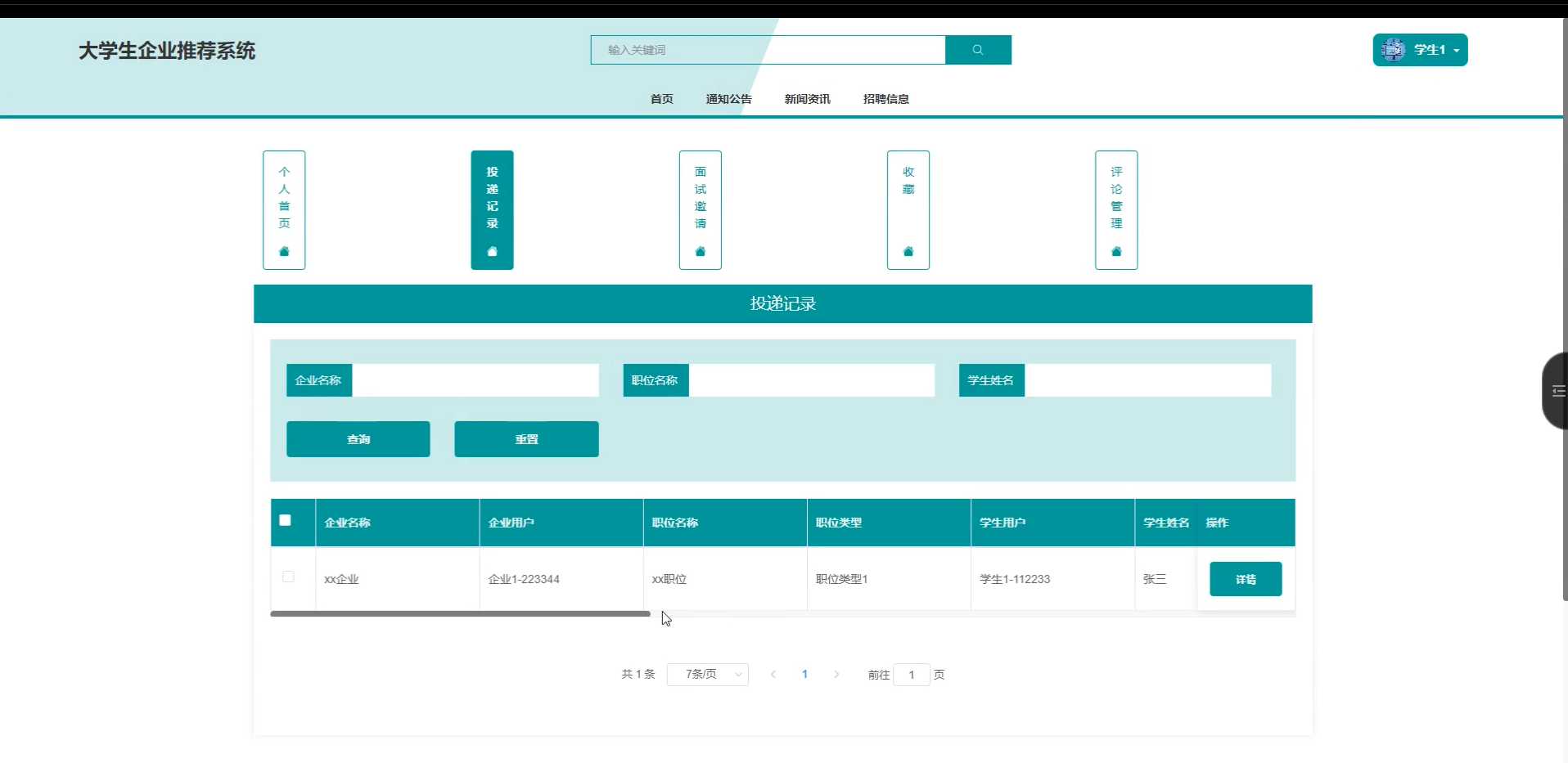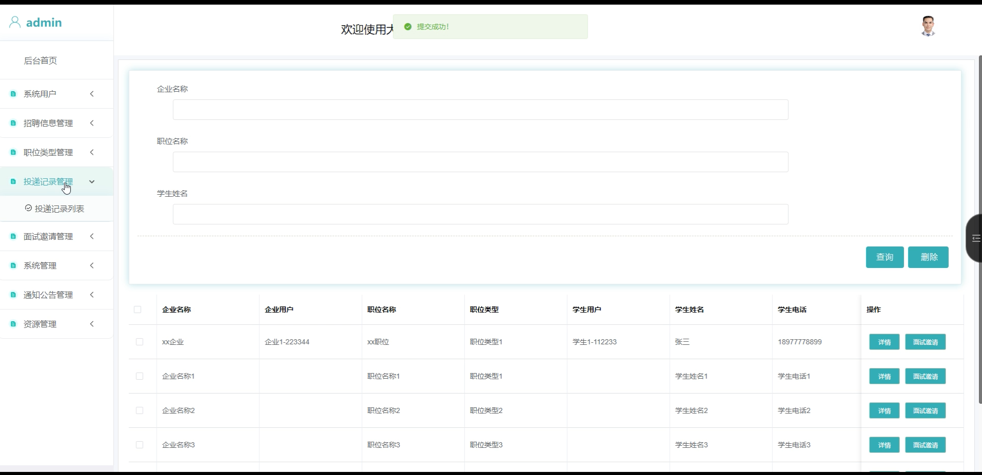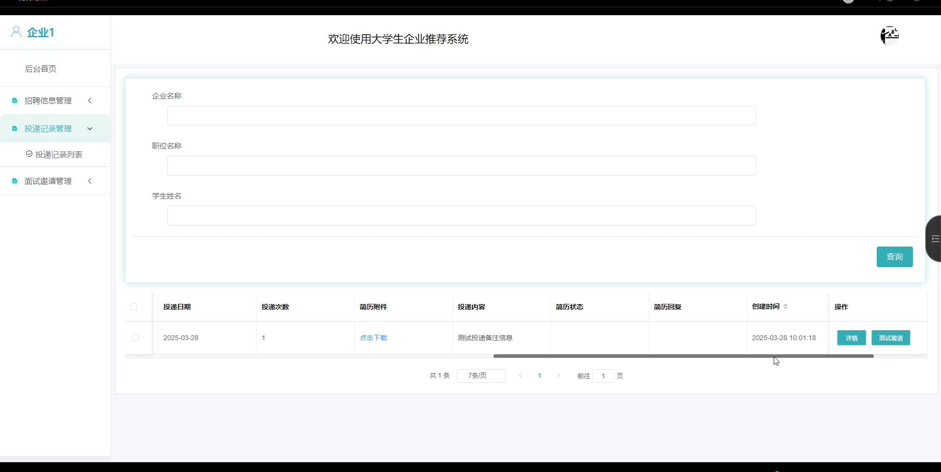 投递记录管理:查看收到的学生简历,进行筛选和评估。