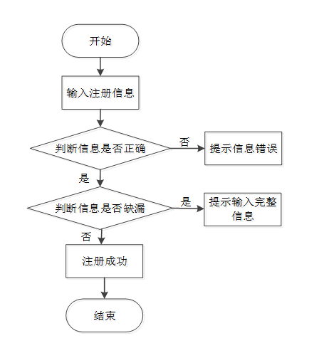 未有账号的用户可进入注册界面进行注册操作,填写注册表格,包括用户名、密码、电子邮件等必要信息。后台系统验证并保存用户提交的信息。分配唯一用户标识符。注册成功后,用户可以使用账号密码进行登录。用户注册流程图如图3-6所示。