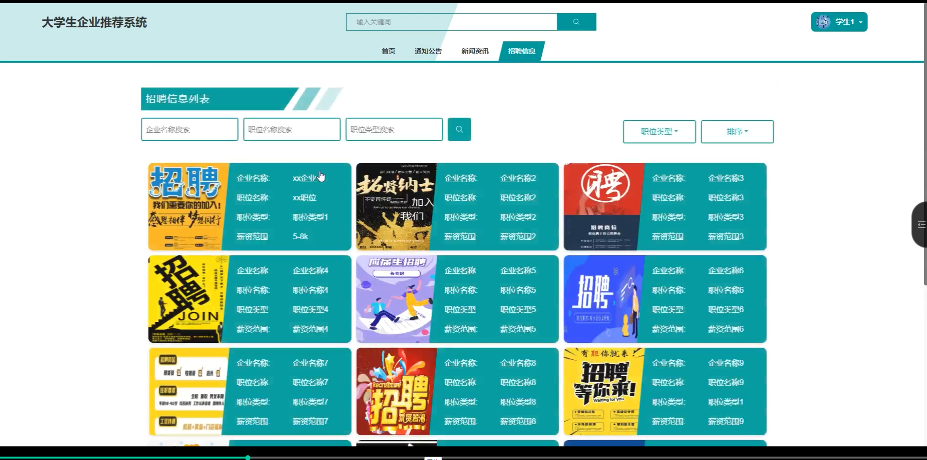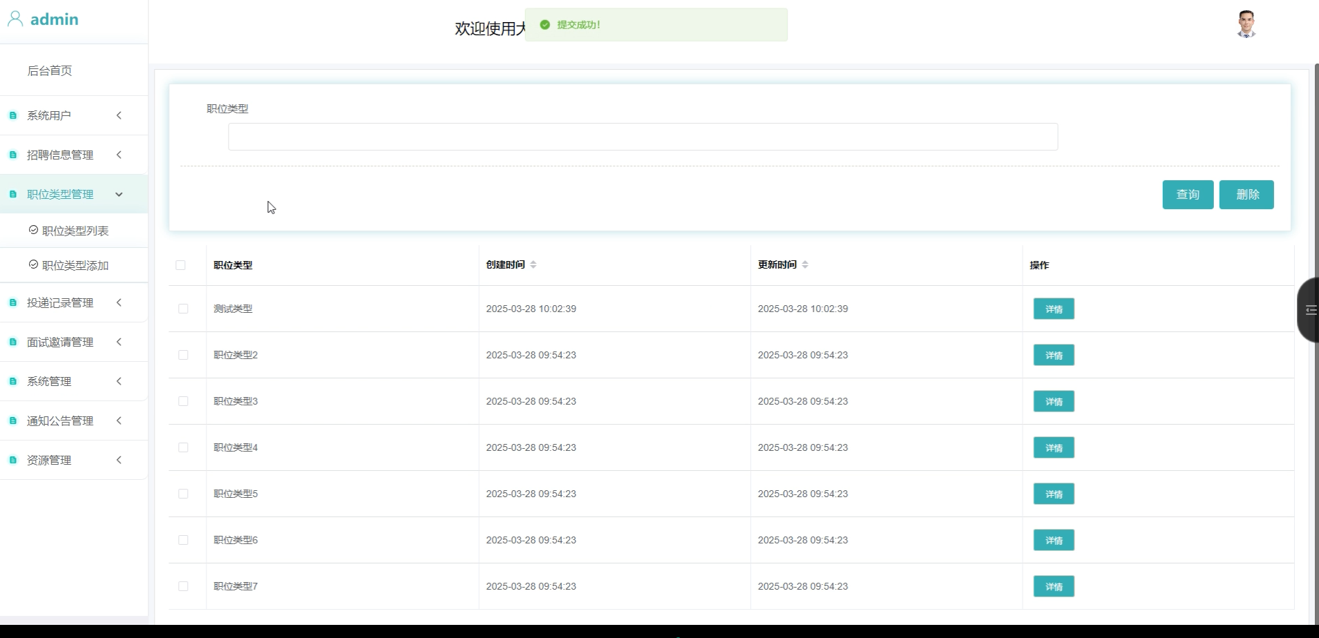 职位类型管理:维护系统中的职位分类,方便学生根据兴趣查找相关岗位。