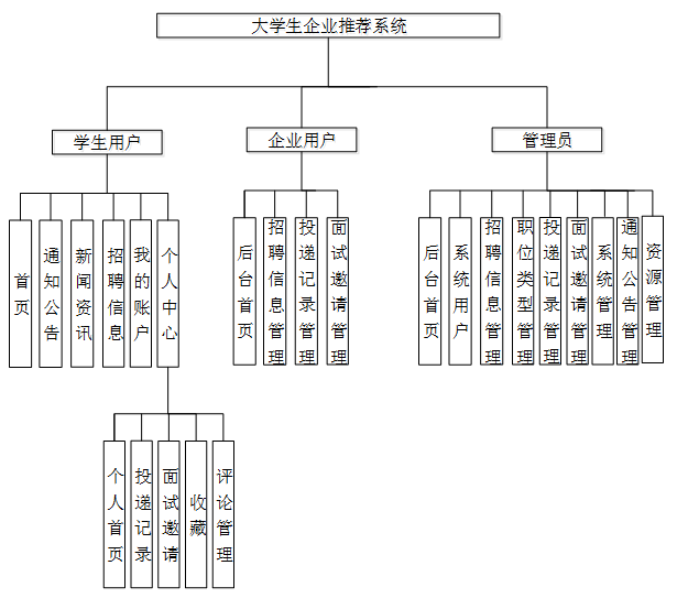 系统的设计考虑到了不同用户角色的具体需求,确保每个用户群体都能从中受益。例如,管理员可以轻松维护系统的正常运作,保证数据的真实性和有效性;学生用户能够方便地浏览招聘信息、管理个人资料以及跟踪投递状态;企业用户则可便捷发布招聘信息并处理相关事务。这种全方位的服务模式旨在促进高校毕业生顺利过渡到职场,助力其职业发展道路更加顺畅。总之,大学生企业推荐系统的建立对于改善现有就业环境,增强大学生就业竞争力具有深远意义。