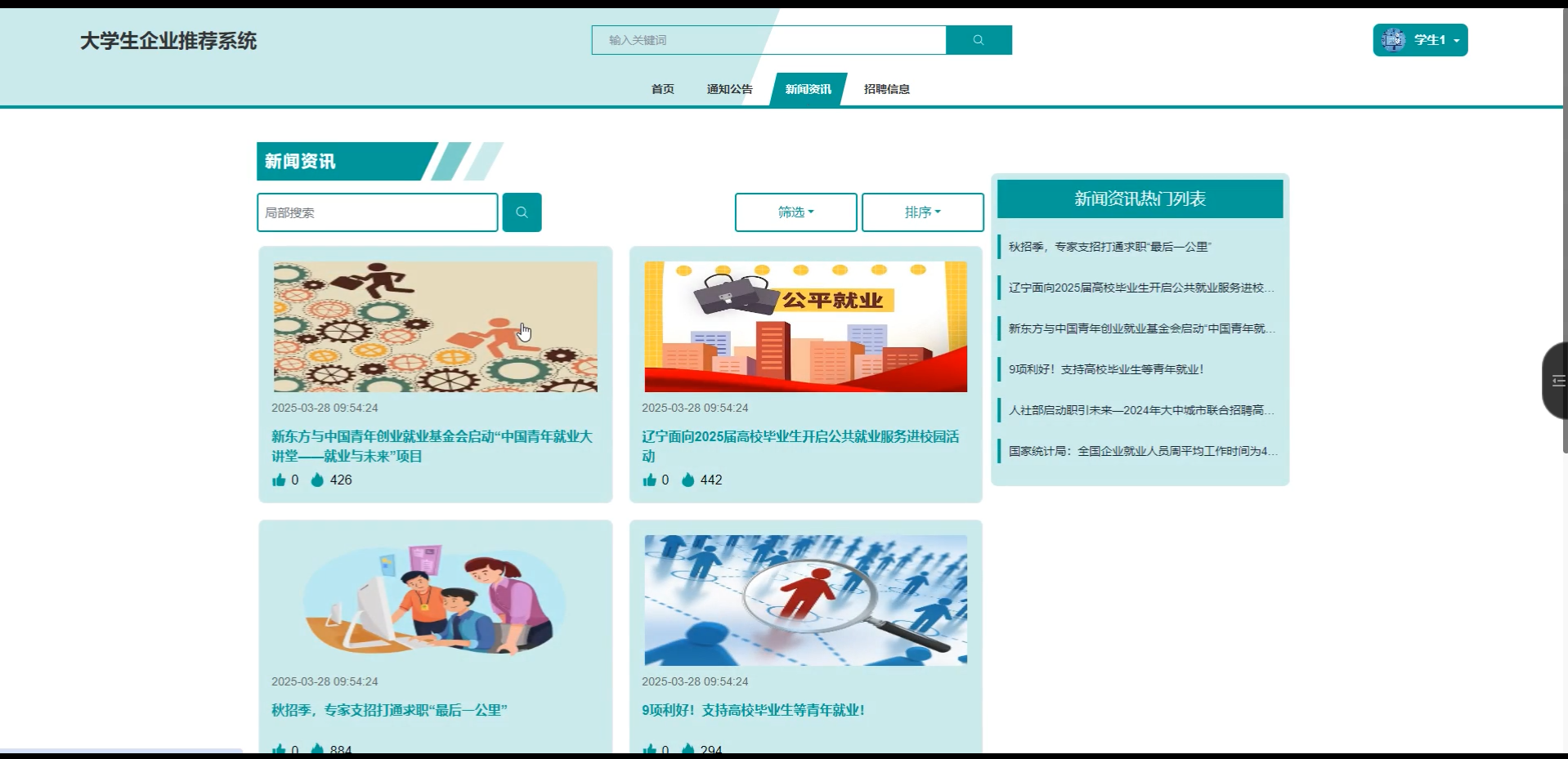 尽管国内外在这一领域已取得了一定成果,但现有研究仍面临挑战,如如何进一步提升匹配精度,怎样更好地解决地域差异带来的影响等。这些努力共同推动着大学生企业推荐系统向着更加智能化、便捷化的方向发展,力求为用户提供更高效的服务体验。通过不断优化系统设计,可以预见未来这类平台将在促进大学生就业方面发挥更大作用。