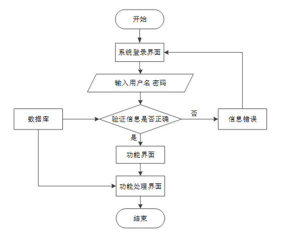 用户访问系统,进入登录页面页面,入其用户名和密码,后端服务接收登录请求,验证用户提供的用户名和密码是否匹配数据库中存储的信息,验证通过即可登录成功。登录流程图如图3-5所示。
