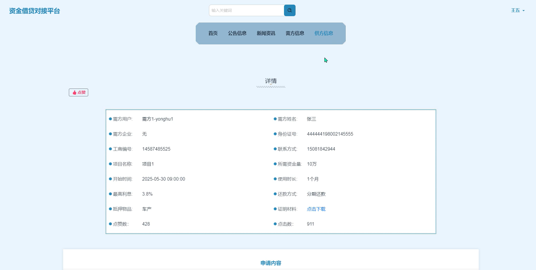 构建一个信息公开、功能完整、角色分明的借贷对接系统,有助于打破传统融资方式中的信息壁垒,提升资金流转效率与市场活力。通过技术手段实现需求方与提供方之间的精准对接,不仅优化了借贷流程,还为借贷双方建立起便捷、可信、可控的交互环境。系统的角色权限划分机制保障了不同用户在平台中的数据安全与操作规范,提升了平台整体运行的稳定性与可信度。功能模块如需方信息发布、供方资源展示、文书资料管理、互动评论等环节,为平台构建起完整的资金对接生态链。在政策逐步放宽民间融资渠道、推动普惠金融发展的趋势下,开发和推广资金借贷对接平台具有显著的现实价值。通过标准化系统平台的建设,不仅可以促进社会资金的合理配置,也为小微企业和个体用户提供了更具可行性与灵活性的融资通道,为金融服务模式创新提供了应用基础和发展方向。