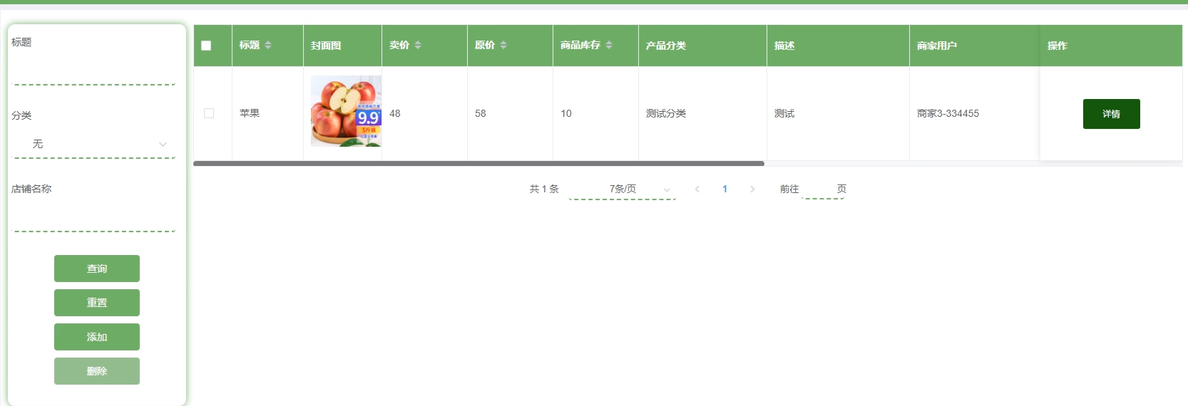| 预期效果 | 商家能够管理商品信息,新增、修改、删除商品成功 |