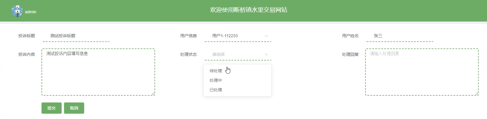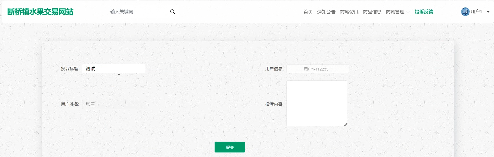 | 预期效果 | 用户能够成功提交投诉,系统提示反馈已提交 |