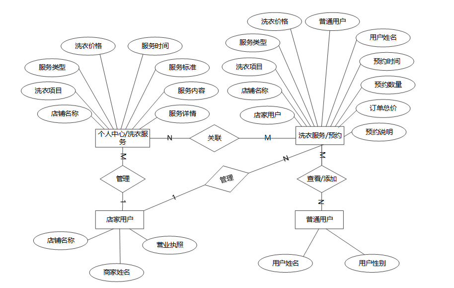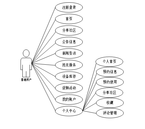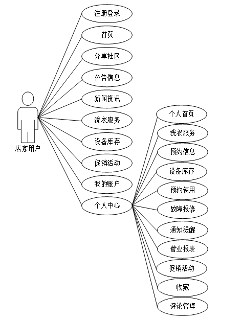 本洗衣管理系统分为注册用户和店家用户,用例图如下: