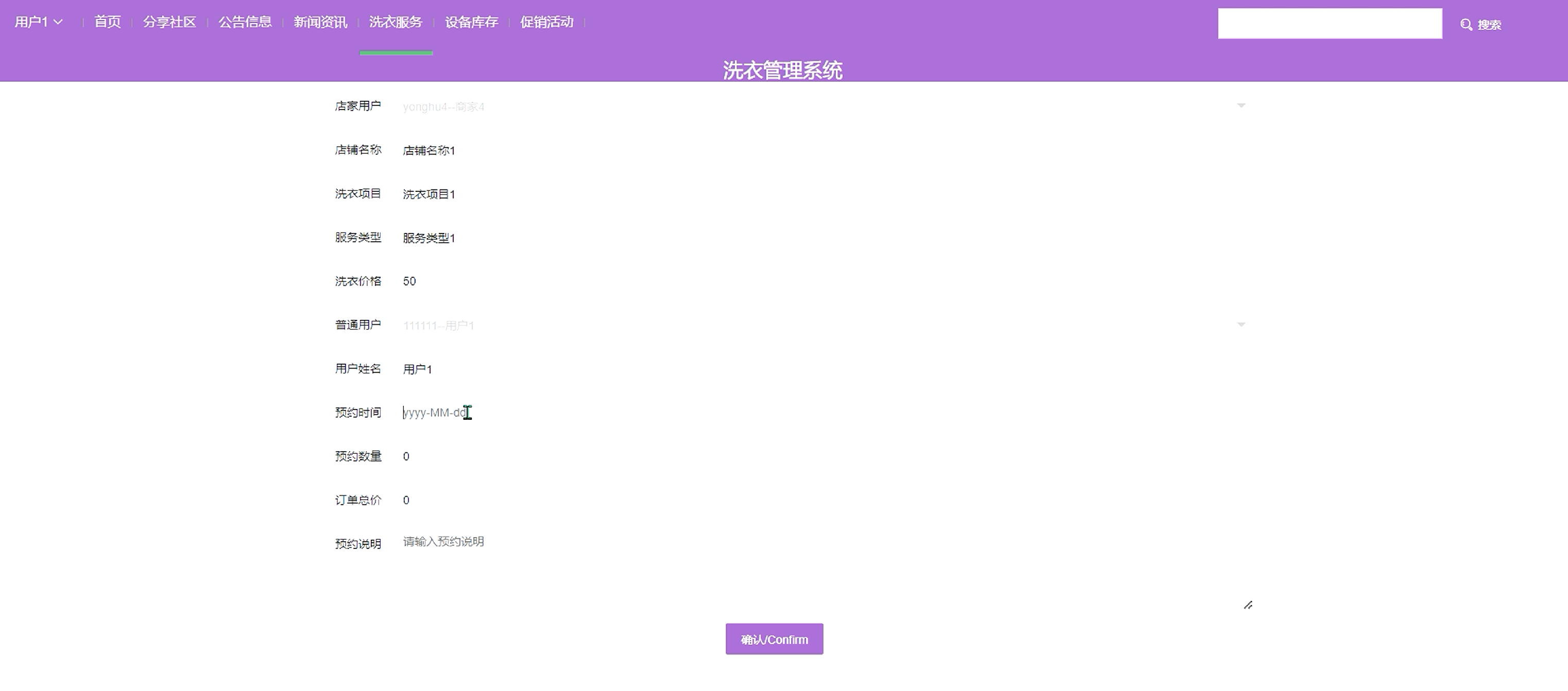 | 预期结果 | 提交以后,页面首页会显示新的洗衣服务 |