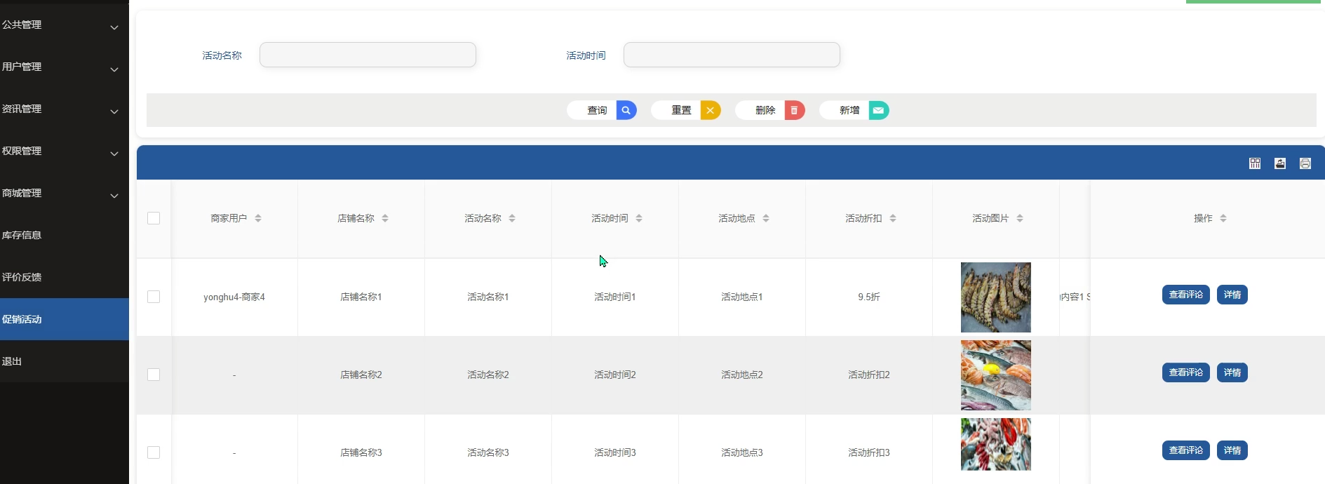支持商家自助设置、添加促销活动,如限时折扣、满减等,提高商品曝光率和销售量,同时吸引更多潜在消费者。商城管理界面如图5-17所示。
