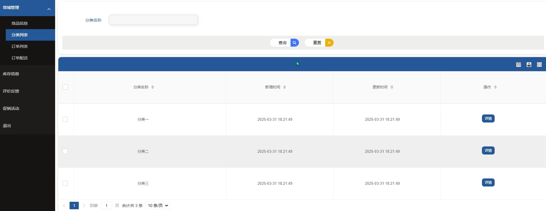管理员可审核和维护商品信息,管理商品分类,跟踪和处理用户订单,并对订单配送状态进行统一监管,保障交易流程的顺畅进行。商城管理界面如图5-11所示。