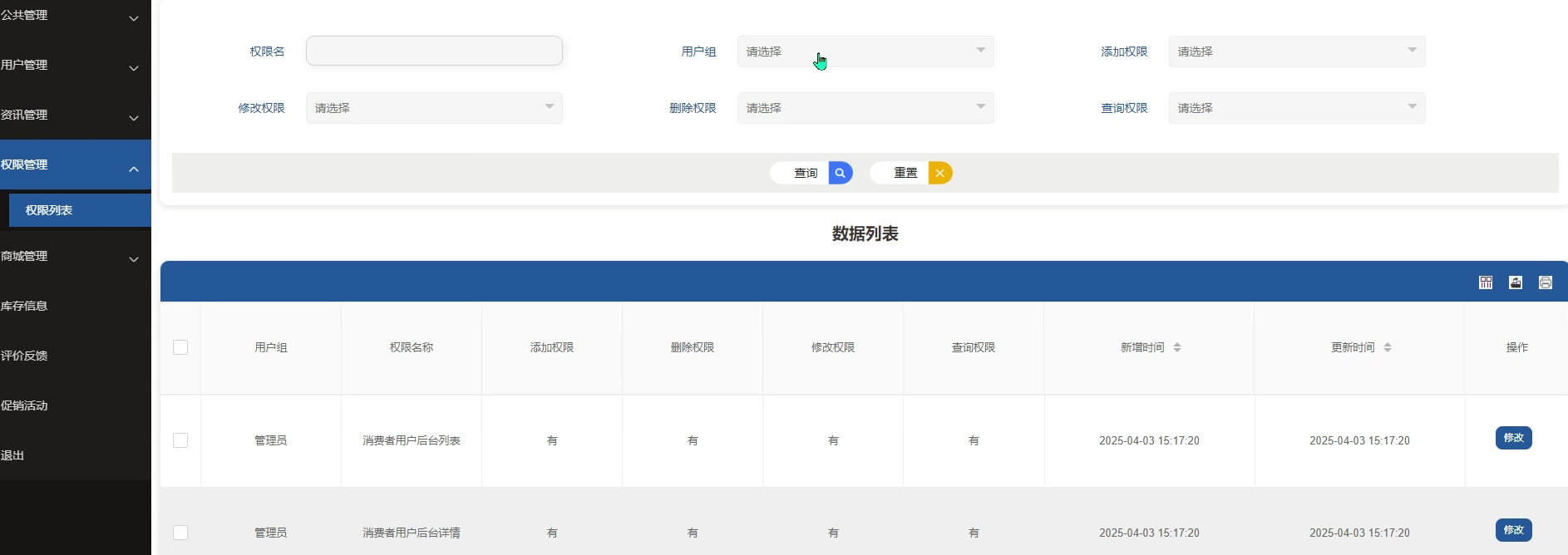 用于配置不同用户角色的操作权限,确保各类用户只能访问与其身份对应的功能模块,增强平台的安全性与规范性。权限管理界面如图5-10所示。