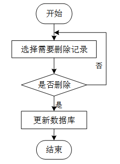 用户选择需要删除的记录后,系统判断是否确认删除。若未确认,返回选择环节;若确认删除,则更新数据库,删除对应记录,完成操作后流程结束。删除信息流程图如图3-8所示。