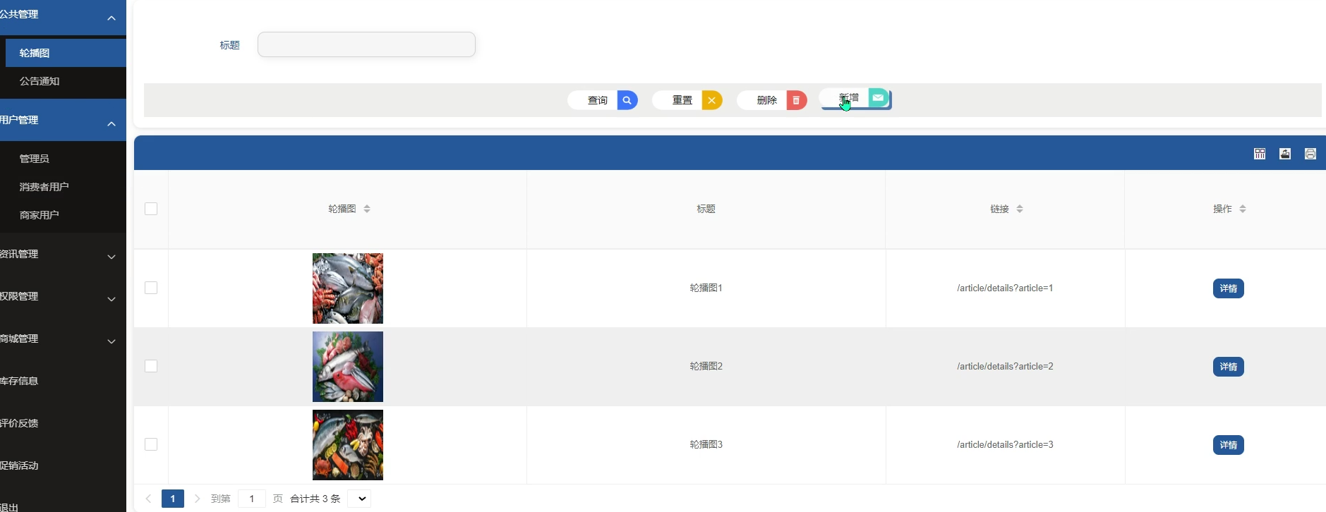 | 轮播图管理 | 管理员上传、删除轮播图,检查是否能正常显示 | 无 | 轮播图管理正常,上传和删除无误 |