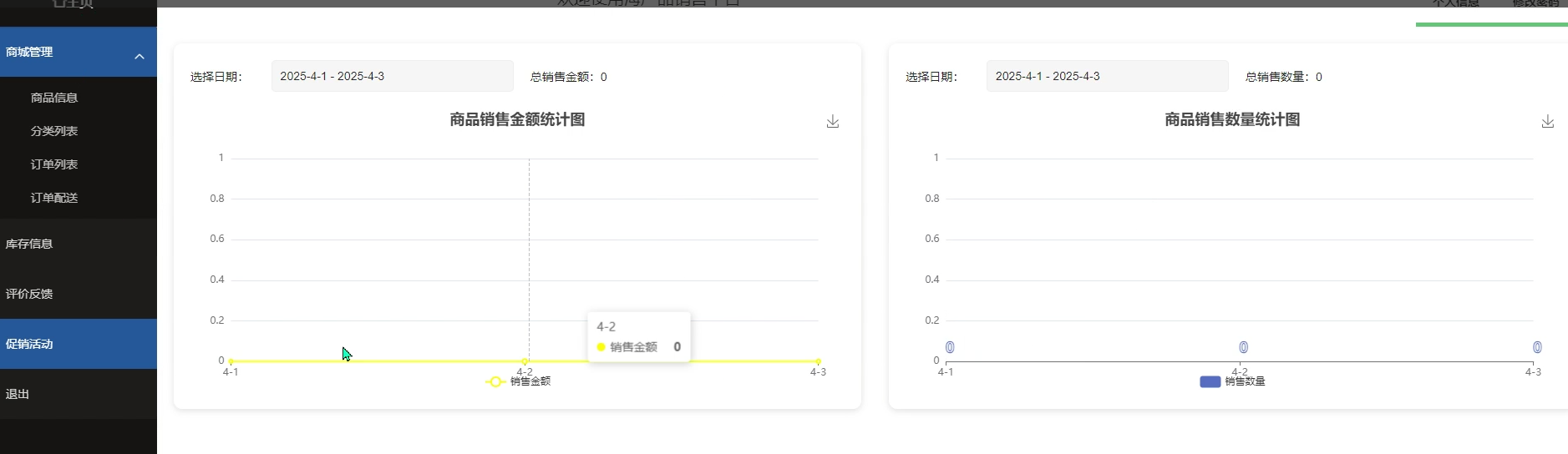 商家主页展示商品销售金额和销售数量统计等重要数据,帮助商家快速了解销售趋势和热销商品,便于调整经营策略。图表直观清晰,方便实时掌握店铺运营情况。主页界面如图5-14所示。