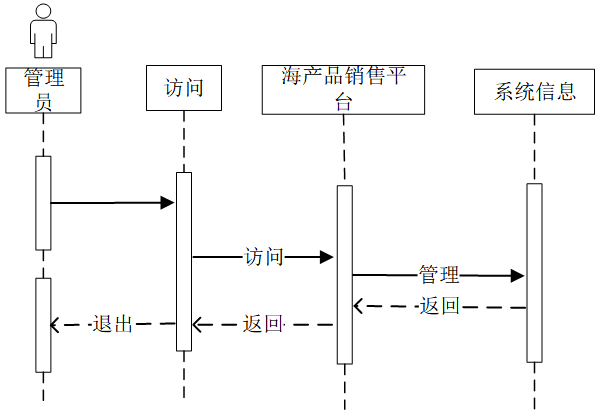 管理员通过访问系统发起请求,系统接收访问后转向系统信息模块进行管理操作。管理完成后,系统返回管理结果至系统,最终反馈给管理员,管理员可选择退出。管理员管理系统信息时序图如图4-6所示。
