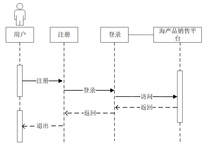 用户通过注册模块发送注册请求,系统完成注册后返回确认信息。随后,用户通过登录模块发送登录请求,系统验证用户信息后允许访问目标系统。用户完成操作后可选择退出,系统终止会话。注册时序图,如图4-3所示。