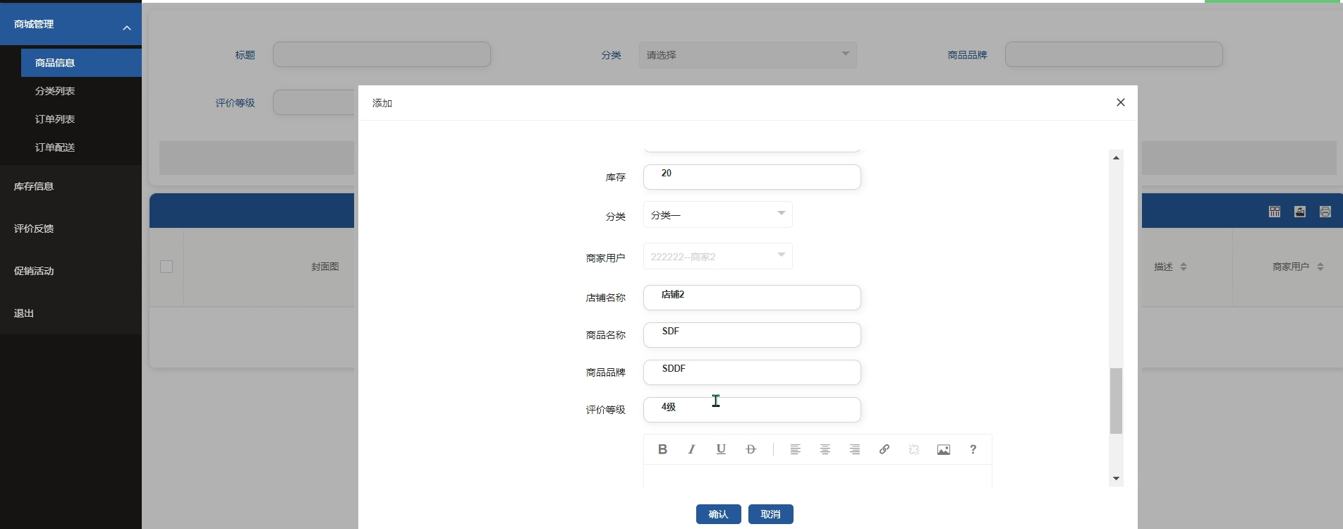 图5-16商城信息添加界面