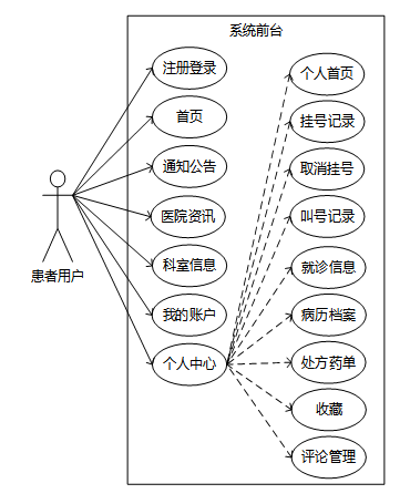 - 个人中心:提供个人首页、挂号记录、取消挂号、叫号记录、就诊信息、病历档案、处方药单、收藏、评论管理等子菜单功能链接,患者用户可根据需求对其进行管理。