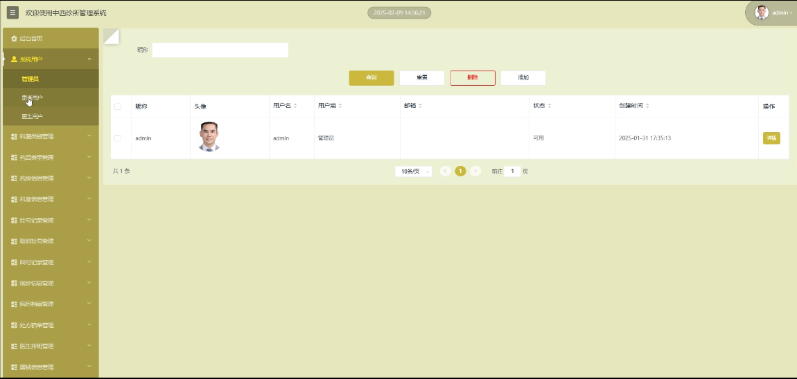 经过系统测试和优化,最终实现了一套功能完善、操作简单且安全性高的中西诊所管理系统。该系统的构建与实施不仅有效提高中西诊所管理运营的便捷性和效率,也提升了患者的就医体验,并为医疗行业的信息化管理提供了有力支持和借鉴。