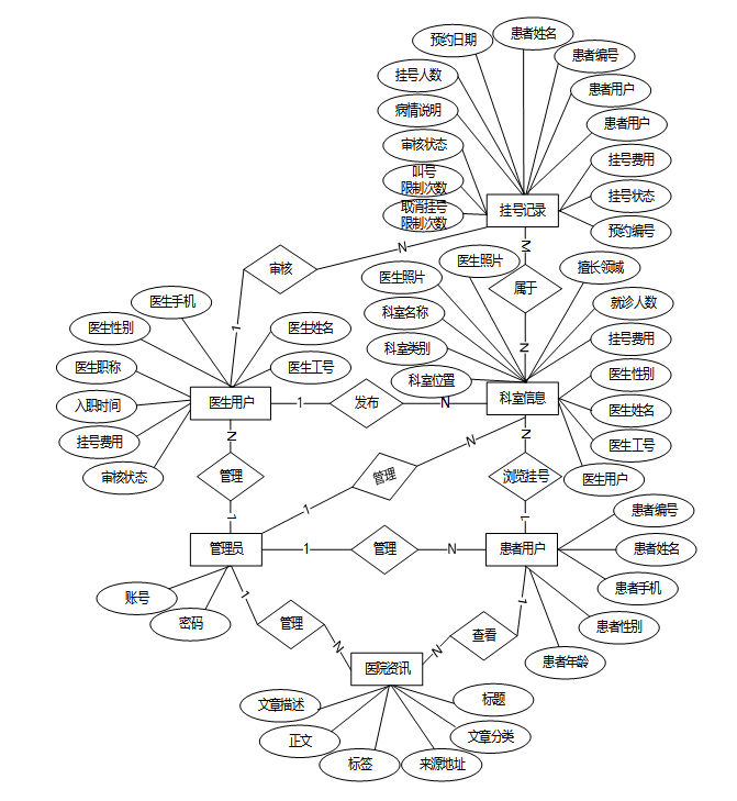 - 科室信息:提供科室信息展示,支持关键字、排序搜索,患者用户可以浏览科室信息,并点赞、收藏和评论科室信息,详情页提供预约挂号功能。