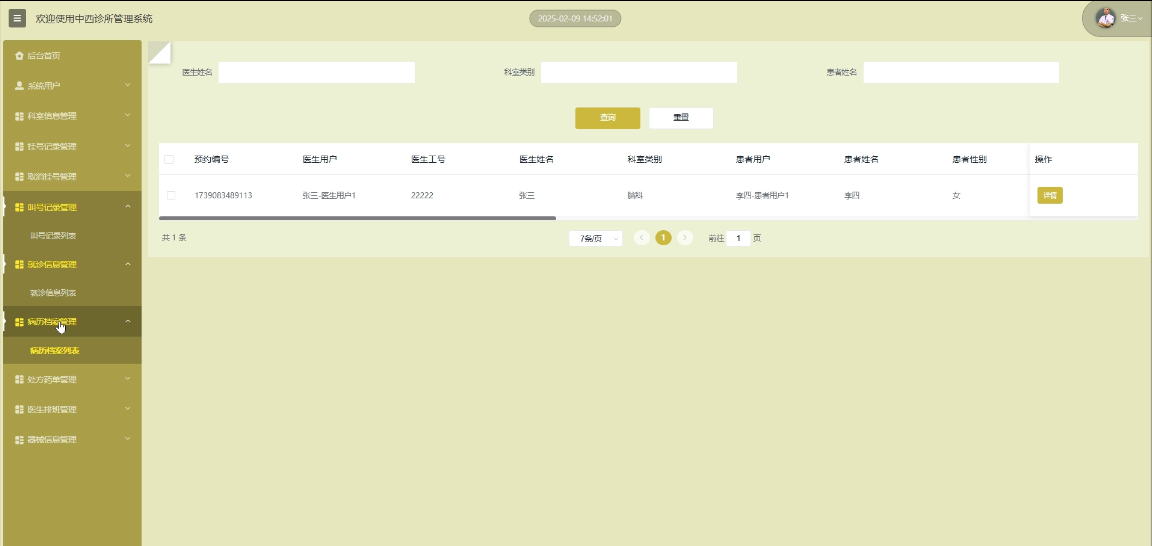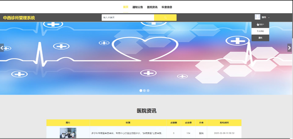 The main purpose of this article is to design and implement a comprehensive Chinese and Western clinic management system that integrates multiple functions such as data statistics, department and drug management, registration and treatment, and medical record prescription management, in order to reduce errors and inconvenience caused by manual management processes, improve management efficiency and user experience. In the research process, a systematic analysis and design approach was adopted. Firstly, a requirement survey was conducted to clarify the needs of users, including different functional modules for patients, doctors, and administrators. By using the SpringBoot framework, the backend logic of the system is built, and efficient data processing and storage are achieved through MySQL database. A front-end and back-end separation design scheme is adopted, and modern technology stacks are used in the front-end to ensure a user-friendly experience.