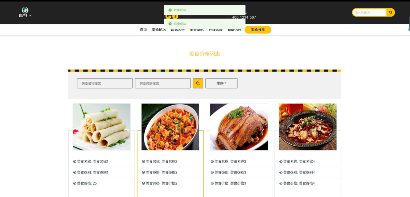 美食论坛:用户可以在论坛发表内容,如美食分享、心得体会等。可以查看论坛列表中某个美食信息的详情,并进行点赞、收藏和评论;还可以回复其他用户的评论信息,实现互动交流。