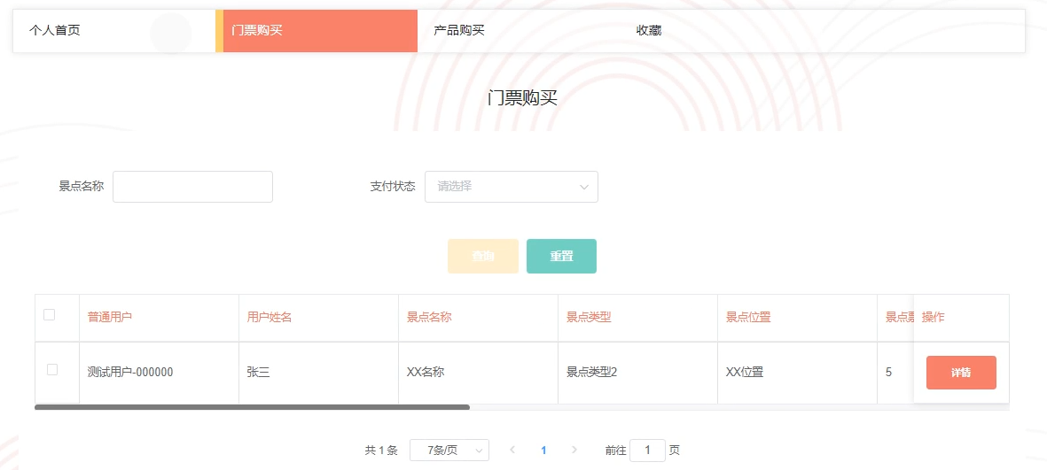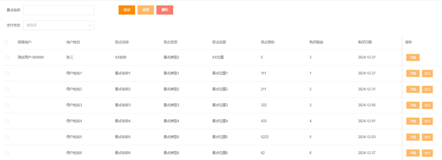 | 测试步骤 | 1. 用户选择景点 2. 用户选择门票类型 3. 用户填写购买信息 4. 用户提交订单 |