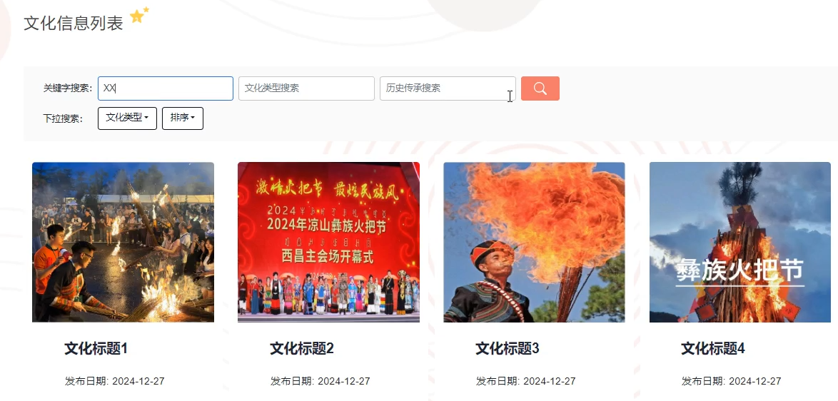 关键词:彝族文化;文化宣传系统;Spring Boot;Vue.js;MySQL