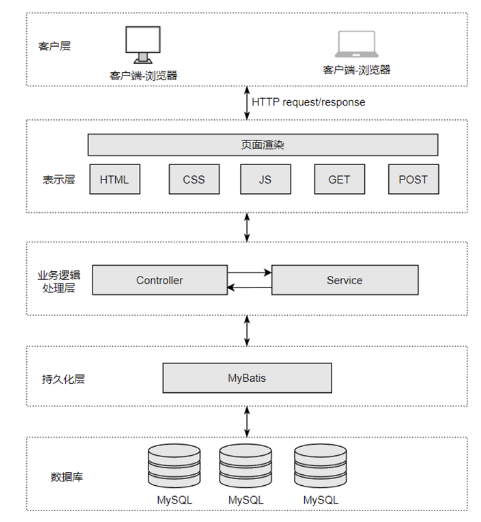 B/S(Browser/Server)架构是一种基于浏览器和服务器的应用架构模式。它以Web浏览器作为客户端,服务器端通过Web技术提供应用服务。客户端通过浏览器与服务器进行交互,用户无需安装专门的客户端应用程序,只需要通过互联网连接即可访问应用程序[1]。在B/S架构中,客户端主要承担用户界面的呈现和基本的输入输出功能,而核心的业务处理、数据存储等操作则由服务器端完成。这种架构的核心优势在于无需在每个客户端机器上安装或更新软件,只要用户的浏览器符合要求,就可以使用系统。