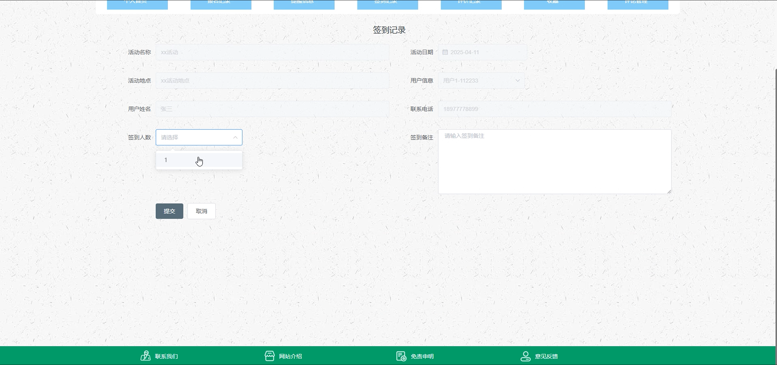 - 签到记录管理:管理员可以查看用户在活动中的签到记录,确保签到信息准确,并根据用户的参与情况进行数据统计和分析。