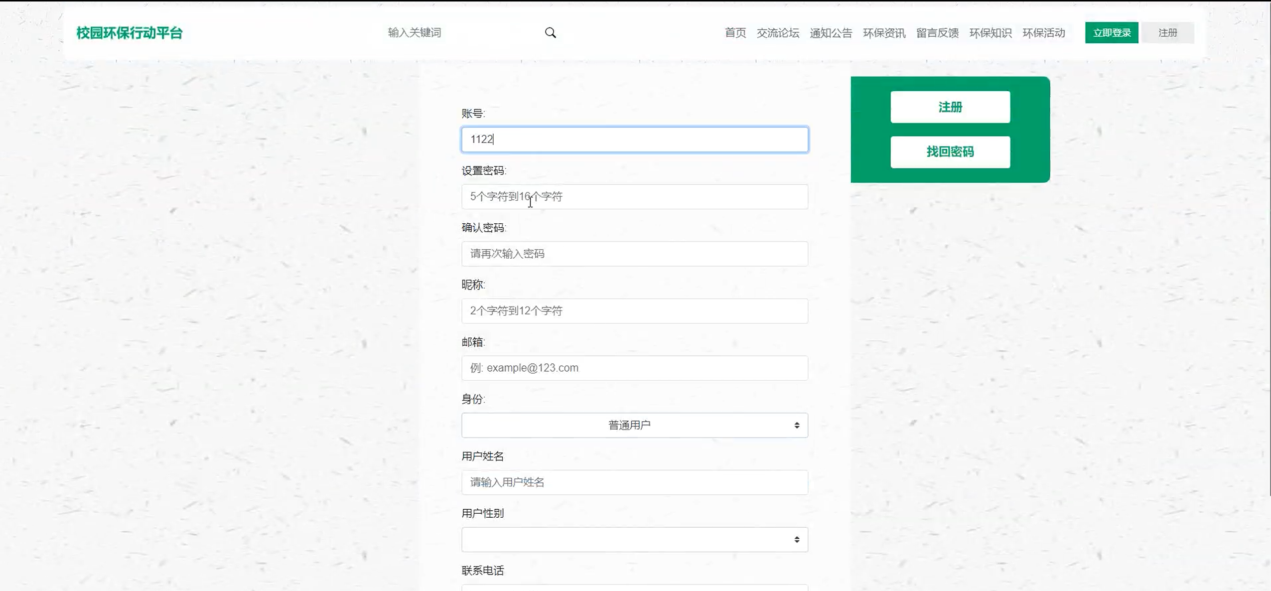 - 首页:首页是普通用户进入平台后的第一界面,展示平台的核心信息和导航功能。用户可以通过首页了解平台的基本信息,快速访问各个模块如交流论坛、环保资讯、通知公告等。