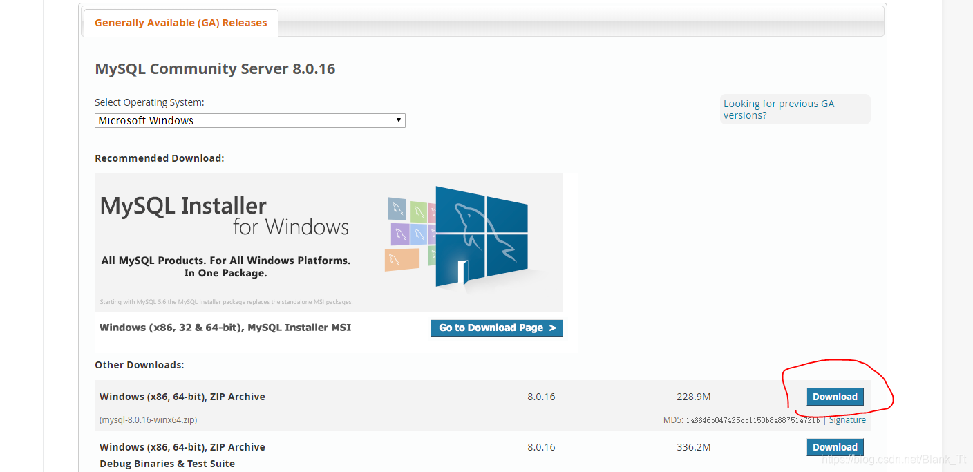 Windows 上安装 MySQL 相对来说会较为简单,最新版本可以在https://dev.mysql.com/downloads/mysql/中下载中查看。