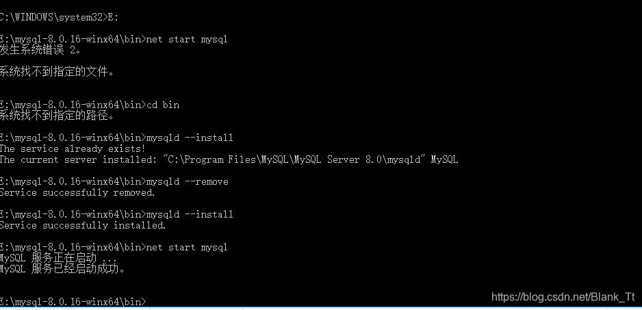 先移除上次安装错误的服务:mysqld -remove,然后再启动服务: