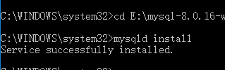 再次执行命令mysqld install,可以发现提示“TThe current server installed: "C:\Program Files\MySQL\MySQL Server 8.0\mysqld" MySQL",而真正的mysqld.exe路径是在E:\mysql-8.0.16-winx64\bin\mysqld.exe;