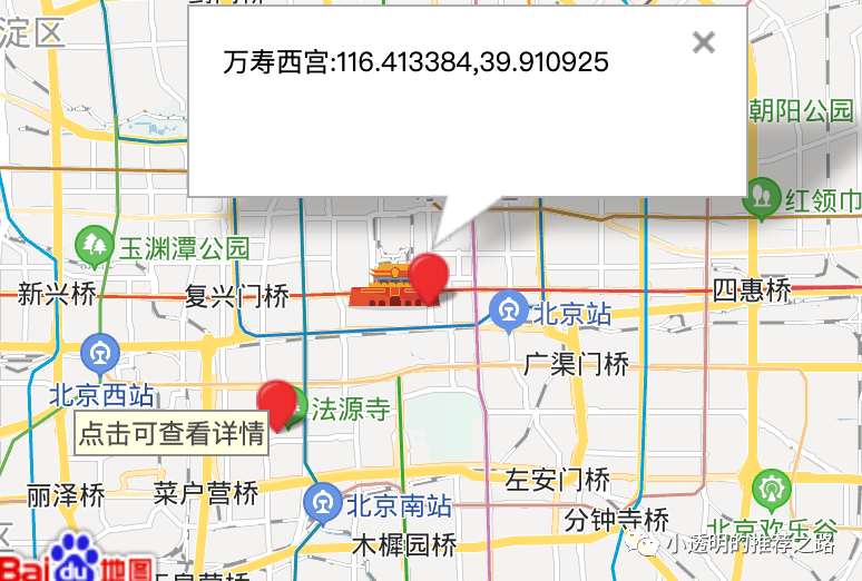 「万寿公园」这个地名我之前得到的是「万寿西宫」,结果无法匹配,查找资料后,才知道在百度地图上匹配的是万寿公园。