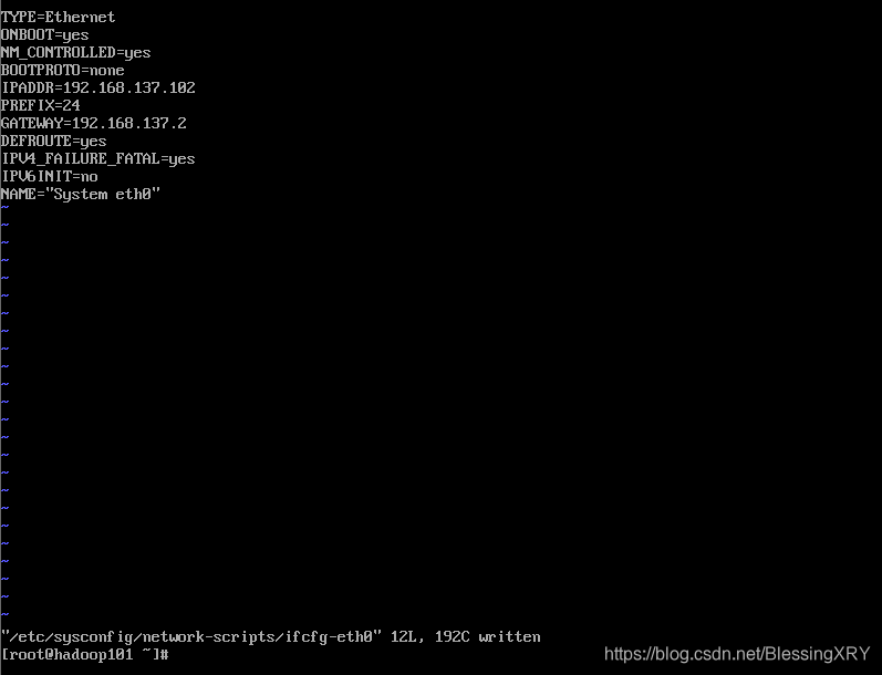 修改后(删除UUID、HWADDR,修改IPADDR(IP地址)):