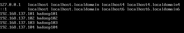 (2)修改后(再最后位置添加hadoop101、hadoop102、hadoop103、hadoop104的主机名与IP地址的映射关系):