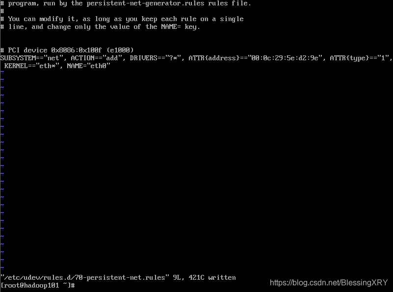 删除后(删除eth0这块网卡,然后将eth1这块网卡的名字改成eth0):
