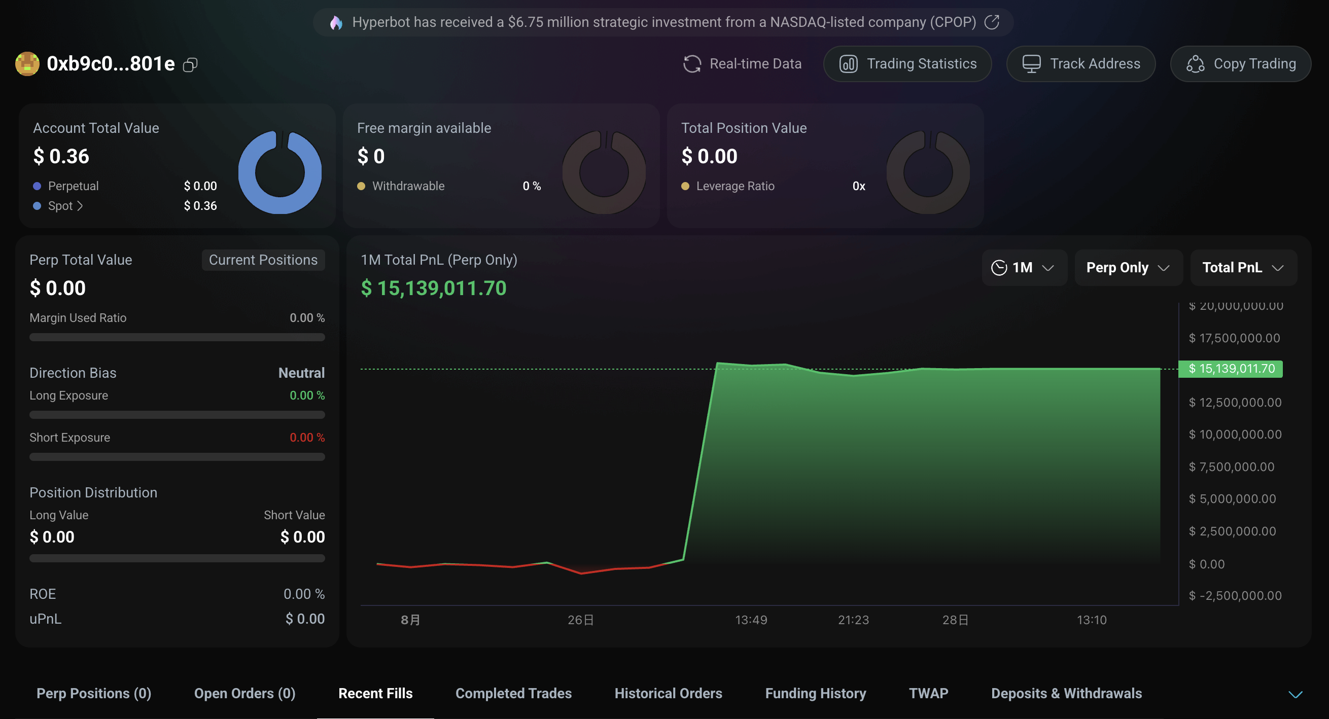 第三步:收割空头大军当合约价格异常飙升时,所有做空的头寸都被迫面临清算。在 Hyperliquid 这样一个订单簿完全透明的平台上,谁在哪个价位会被清算,几乎是半公开的秘密。攻击者看着这张「清算地图」,精准地将价格推过了引爆点。大量空头被强制平仓,而早已埋伏好的攻击者,则轻松地接走了这些带血的筹码,最终获利约 1500 万美元。