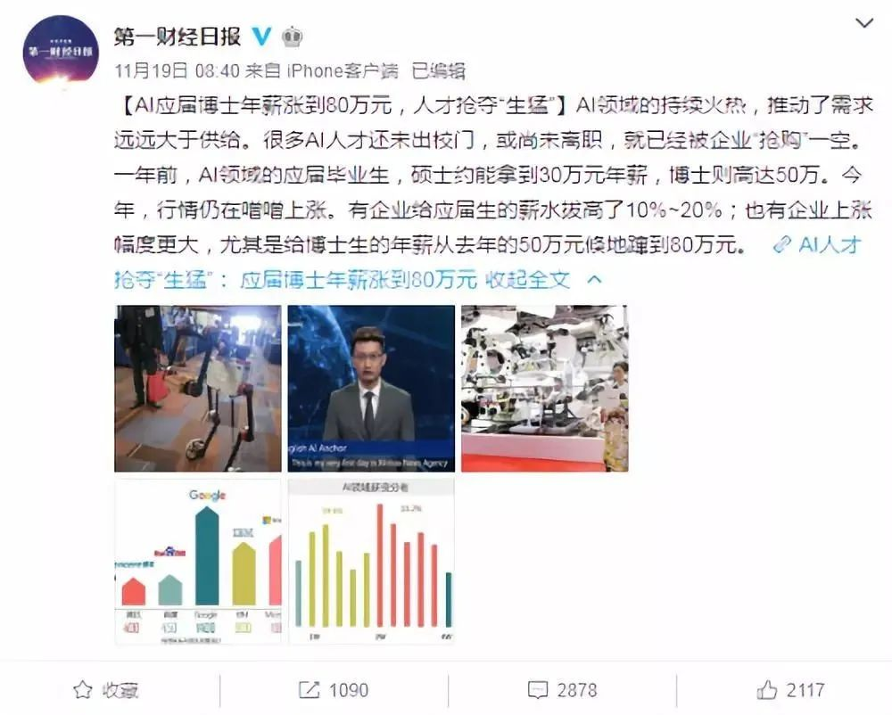 据说很多人还没走出校门,就已经被企业“预定”完毕,AI博士应届生年薪甚至已经涨到80万……