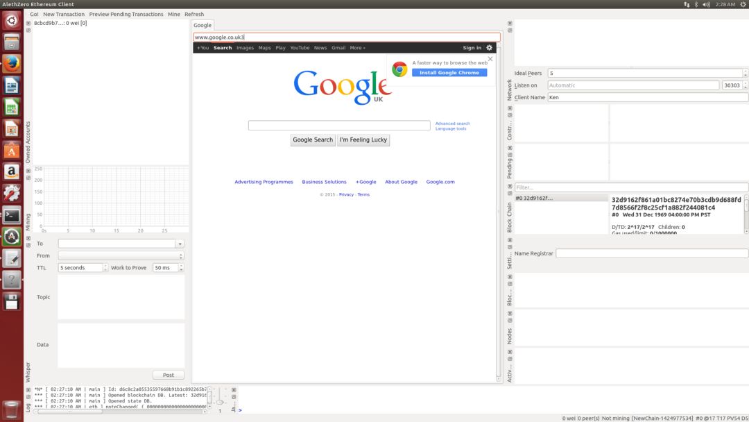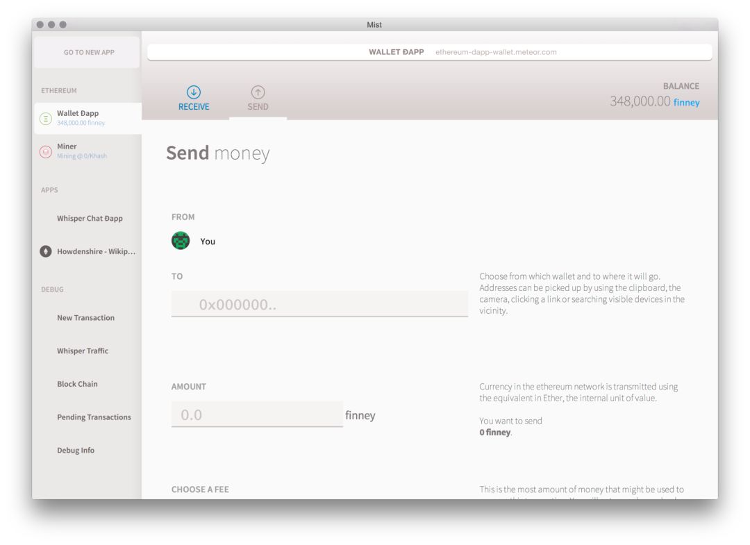 其余面板包含我们稍后将使用的调试和技术信息。尽管对开发人员有用,但这不是一个非常友好的用户界面,因此以太坊计划开发最新版的浏览器(暂定名为“Mist”),而且计划构建在Go Ethereum实现之上,且具有完全不同的外观和体验。事实上,在以太坊更新其浏览器后,其界面将像下面这样: