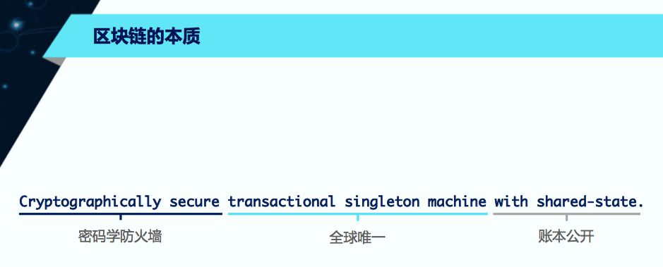 前面几位嘉宾分享的都是比较前沿的技术,我之前的工作是比较偏落地、有实际业务承载的项目,现在在区块链方向发展。今天我想跟大家分享四个概念:
