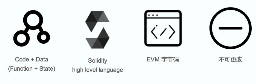 智能合约就是代码+数据(功能+状态);Solidity(智能合约开发工具)在设计时参考 JavaScript、Python 等高阶语言。此外,如同现实中的合同一样,智能合约一旦发布是不可更改的,例如交易时间、交易金额、违约条款、补充协议等。