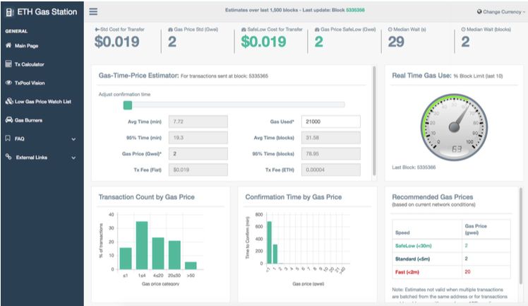对于开发者来说,每一笔交易都需要精雕细琢:我该给多少Gas合适?我该怎么推荐给我的用户?哪个gasPrice最合适?大家可以通过 ETH Gas Station 网站(https://ethgasstation.info/)查看市场状况。