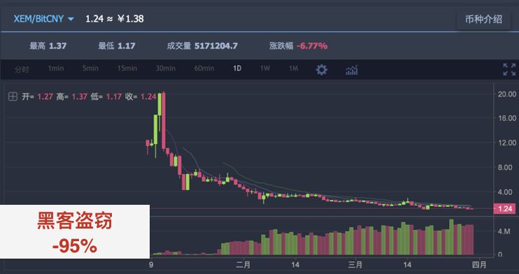 CoinTiger曾一度是全球第三大新经币的出货渠道,后来我们才发现,原来是黑客在买。黑客在全世界通过各种各样的匿名账号出货,导致我们一下子丢失了4亿美金的货币,一个月内跌了95%。为什么?因为新经币的不完善,新经币去年12月份还是全球前几名的虚拟币,现在已经掉出前三。