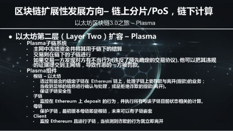 以太坊第二层的扩容,一般可以通过软分叉来实现,它包括Plasma子链系统,Truebit和状态通道。其实质是把一部分计算移到链下,链上只用来做结算见证。这些都是以太坊扩容机制。最近也由JosephPoon和V神提出一套链下子链扩展方案,叫Plasma,与侧链类似,把链上计算转到链下,但与侧链不同的是它但可以层级性扩展,因此扩展性更好。
